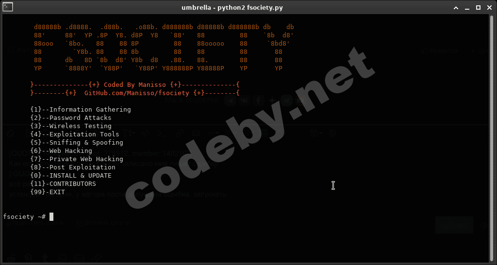 Fsociety – фреймворк для хакера