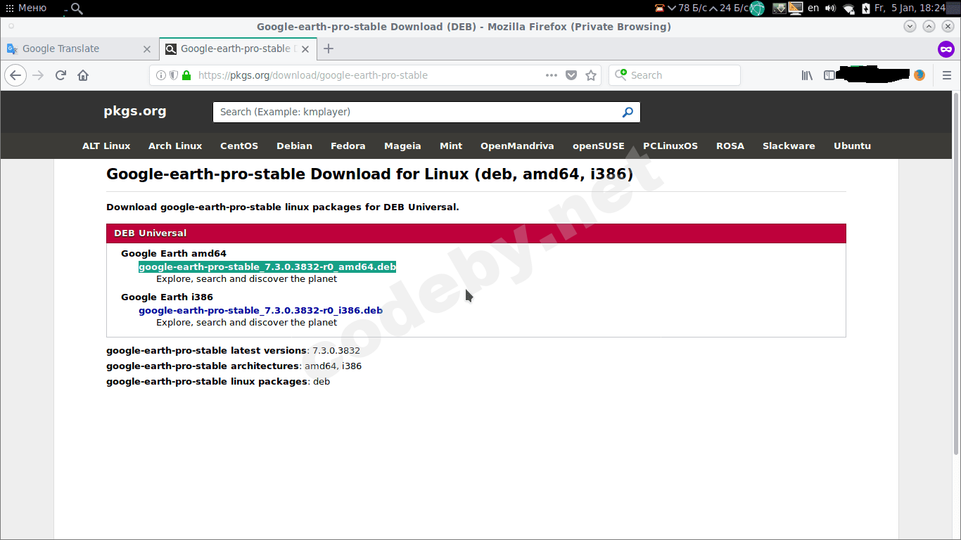 3. Переходим в браузер и качаем google earth.deb с сайта