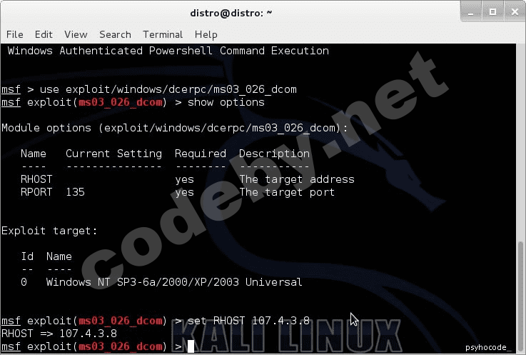 Теперь нужно указать цель (set remote host). Используйте IP цели которую вы атакуите. Обратите внимание на порт который будет использован при атаке.