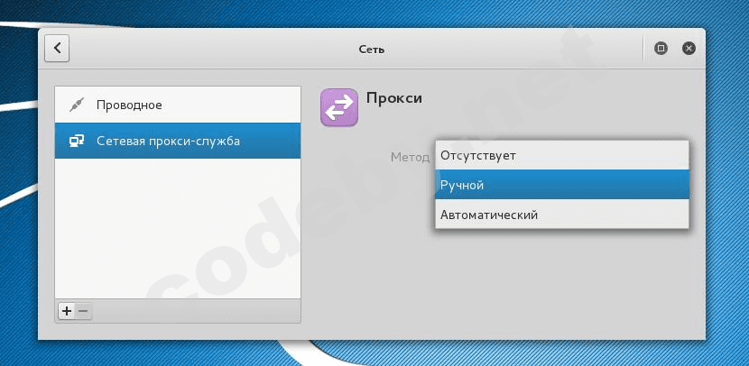 Практически всё готово. Осталось сделать так, чтобы весь трафик из нашей системы отправлялся на прокси. Нам нужно открыть настройки «Параметры сети». Там нужно выбрать «Сетевая прокси-служба» и ввести следующие данные: