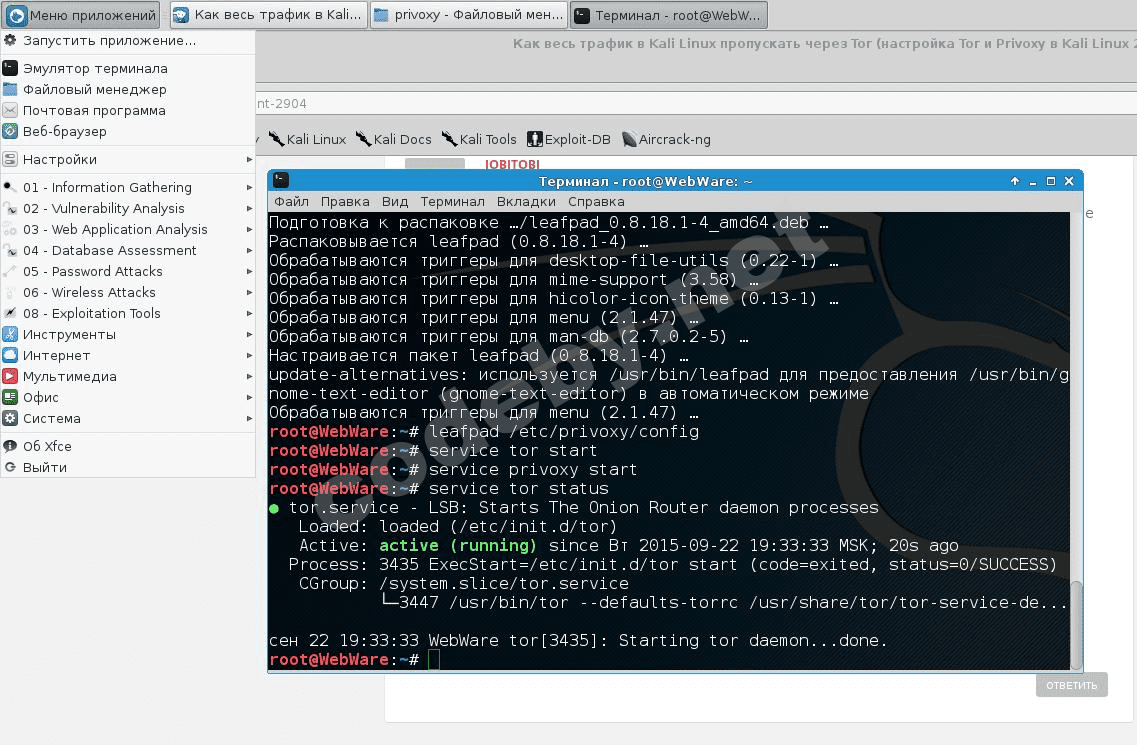 Статья Как весь трафик в Kali Linux пропускать через Tor (настройка Tor и Privoxy в Kali Linux 2.0)