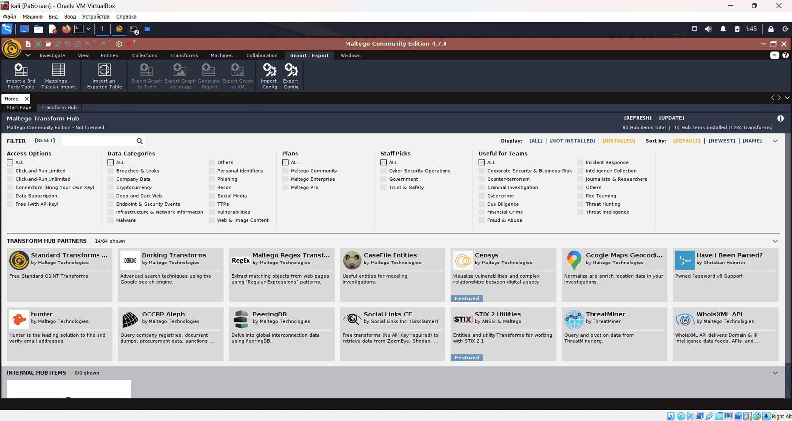 Где искать url seed для установки трансформаций? Мальтего пустой