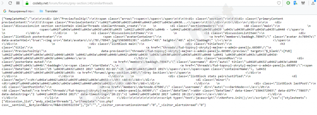 С гугл хрома если проходишь просто редиректит либо наjson ответ либо на страницу codeby на которой написано "Данная страница не может быть отображена в html"