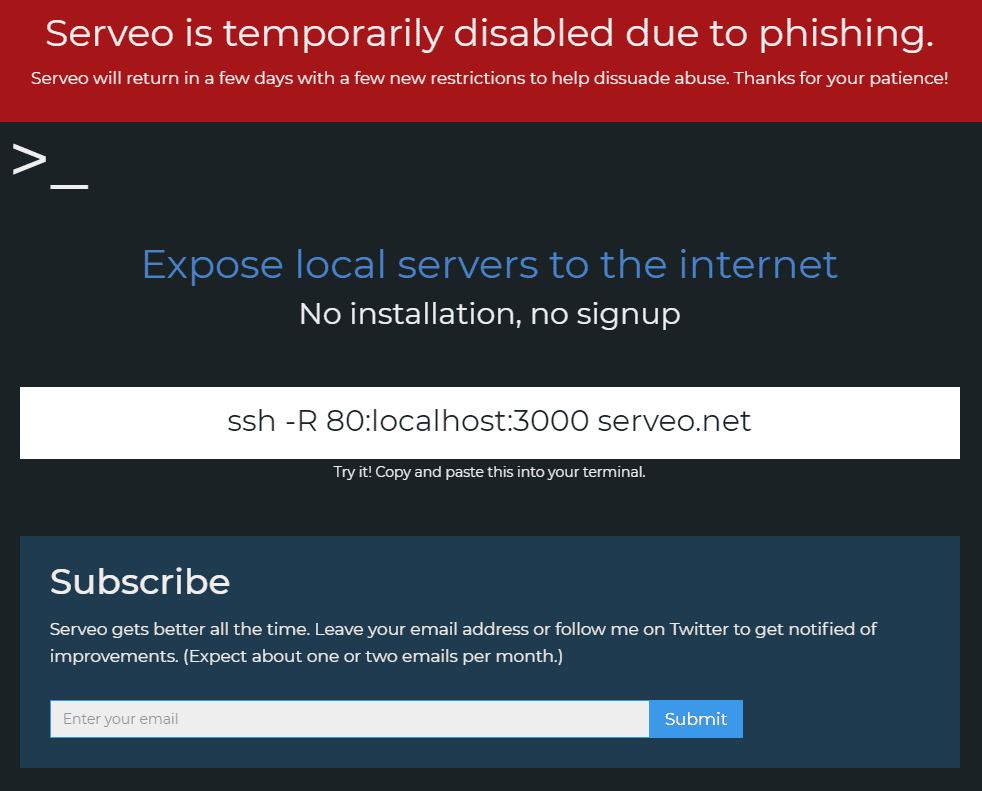 Не работает Serveo запусти через ngrok в чем проблема?Прикол в том что я это пытался делать давно где-то в январе.