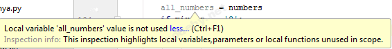 all_numbers в одной функции работает, а во второй это просто лишняя нерабочая строка и т.д. В общем я рекомендую работать в любом редакторе с дебаггером и не будет таких ньюансов.