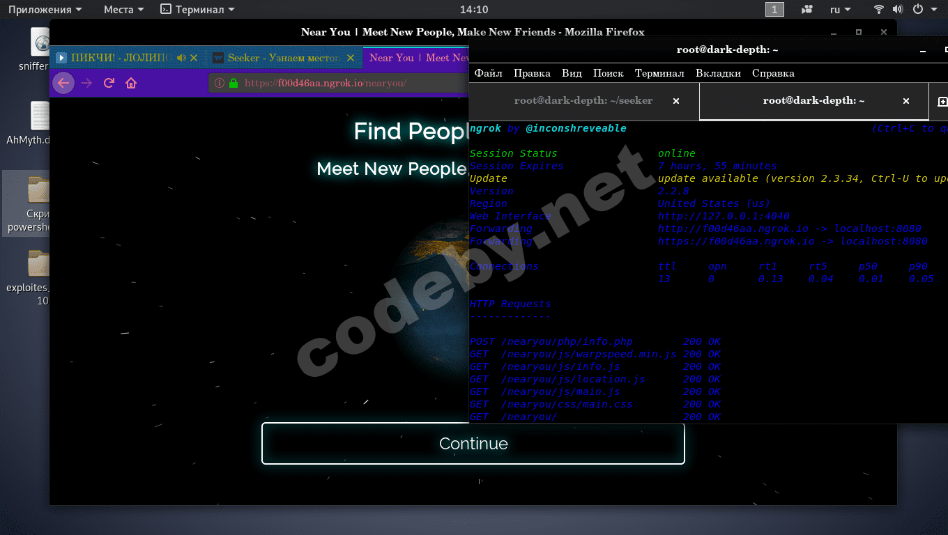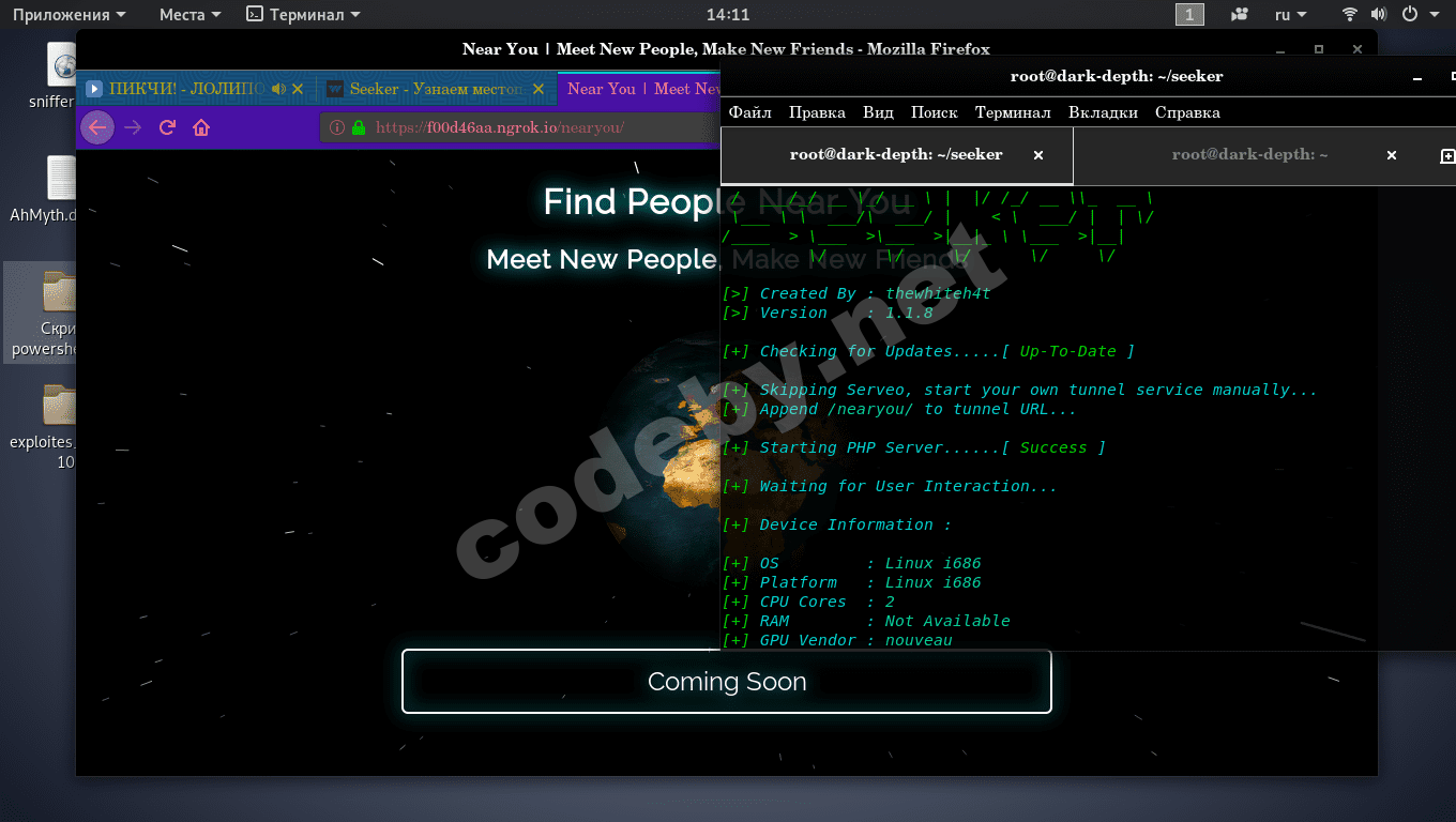 Seeker - Скрипт для поиска местоположения человека. Посредством перехода по ссылки , также используется ngrok.