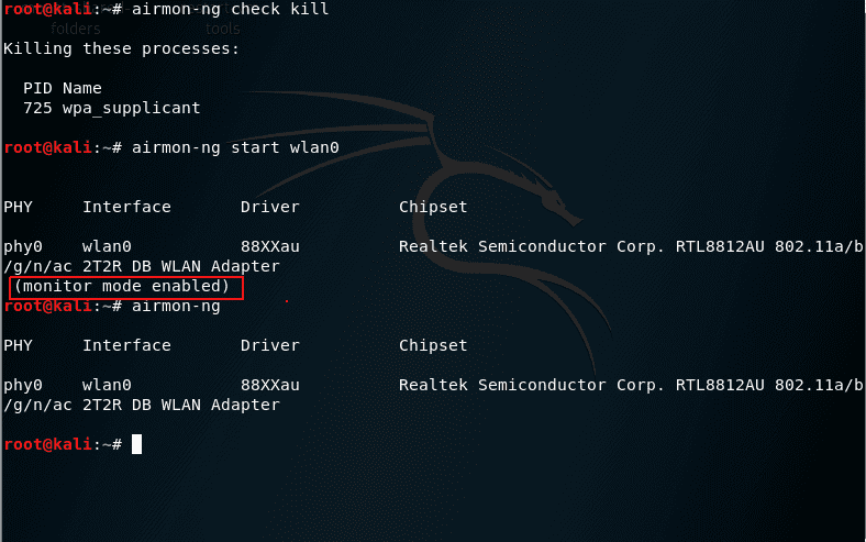 monitor mode enabled = режим монитора включён.