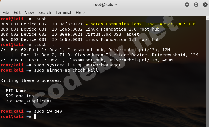 $ sudo airmon-ng check kill